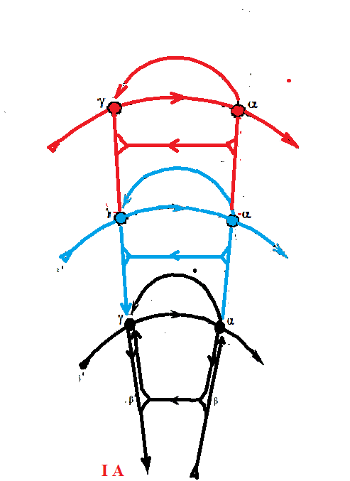Dans les séances du séminaire qui suivent, Lacan reprend ces fonctions des trois pères aux trois temps de l’Œdipe avec l’aide d’un échafaudage de trois graphes du désir, tout d’abord, celui de l’enfant, avec au dessus de lui, le graphe du désir de la mère (le graphe bleu) et celui du père. Au terme de la mise en fonction de ces trois graphes peuvent s’inscrire les deux lettres IA qui correspondent à la mise en place de l’Idéal du moi, soit de l’identification au père, aux insignes du père, qui selon Lacan implique toujours la prise en compte du signifiant phallus et inscrivent donc le sujet dans la fonction phallique, comme homme ou comme femme.
