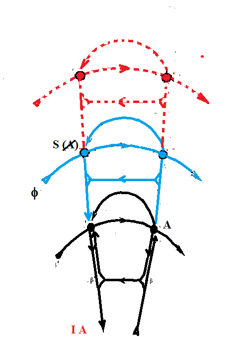 C’est avec l’étape intermédiaire de ces trois graphes, que l’on voit déjà se dessiner celui qu’on appelle le « graphe complet » ou encore « le graphe à deux étages ». Il suffit en effet pour cela de n’inscrire qu’en pointillés le dernier graphe, celui du père, au-delà du graphe du désir de la mère. Cela permet de découvrir le fait que le haut du graphe n’est en fait que le graphe du désir de la mère. S’y inscrit cependant la lettre du signifiant de grand A barré qui est en effet la trace de l’effet de la métaphore paternelle, celle de la castration de l’Autre.