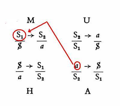 Mais on peut encore argumenter d’une autre façon pour contester cette place usurpée du S1, c’est de lui rappeler aussi bien qu’il n’est que le représentant au titre de signifiant de cet objet perdu, objet perdu qui réapparaîtra en tant qu’objet à retrouver, de par la définition de ce S1 représentant le sujet pour un autre signifiant, S2, cet objet à retrouver glissant dans les mailles du filet de cette longue chaine signifiante, notamment entre S2 et S3 où il apparaît pour la première fois et ce vers l’infini.